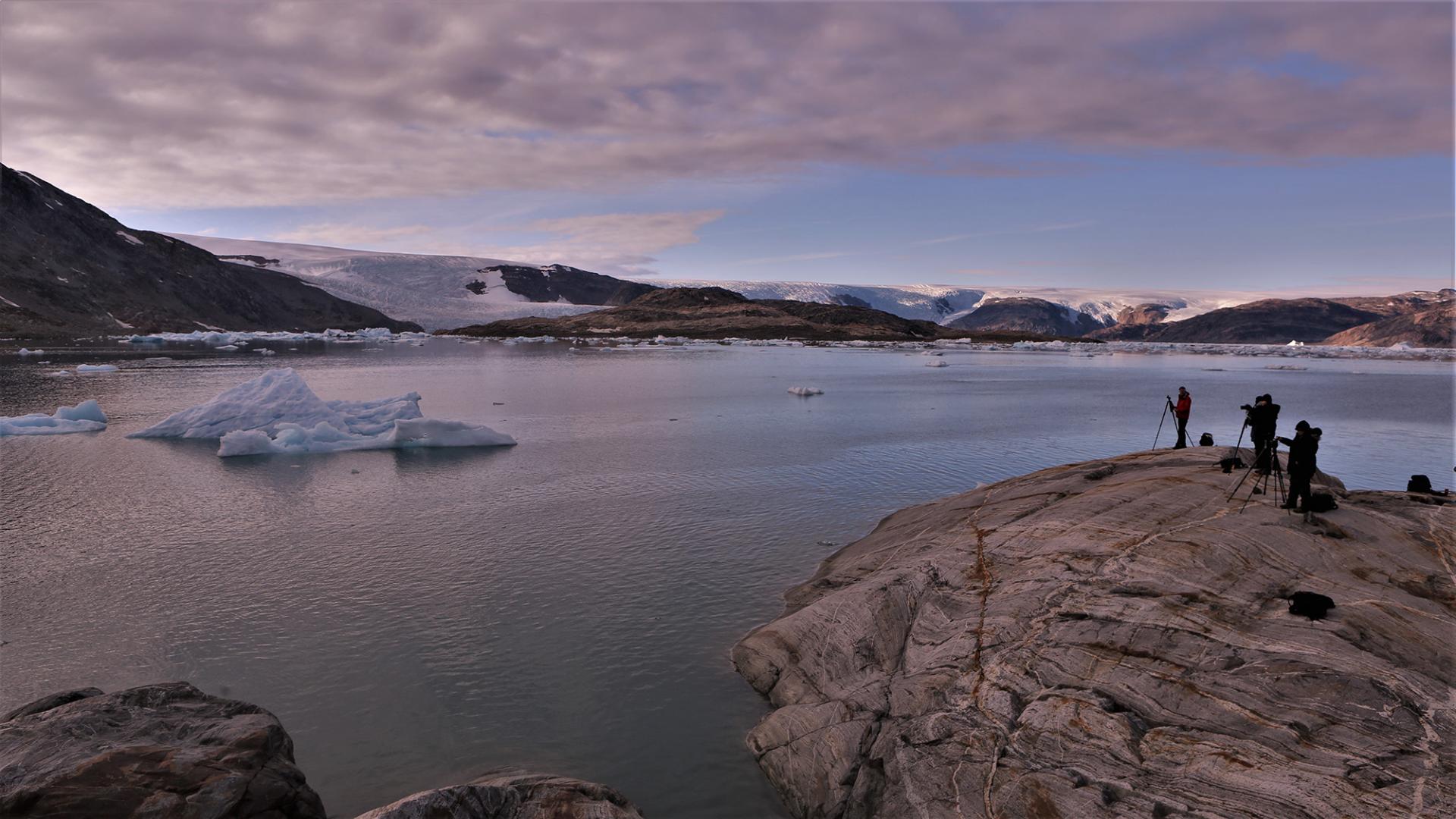 Von hier aus geht es weiter zu Grönlands gewaltiger Eiskappe. Nach einer halbstündigen Wanderung erreichen wir eine kleine Hütte am Rande des Eises. Der Blick öffnet sich über eine schier unendliche weiße Fläche, die sich bis zum Horizont erstreckt. Hier stellen Sie Ihr Stativ auf, um die Weite Eislandschaft im Panorama erfahrbar zu machen.