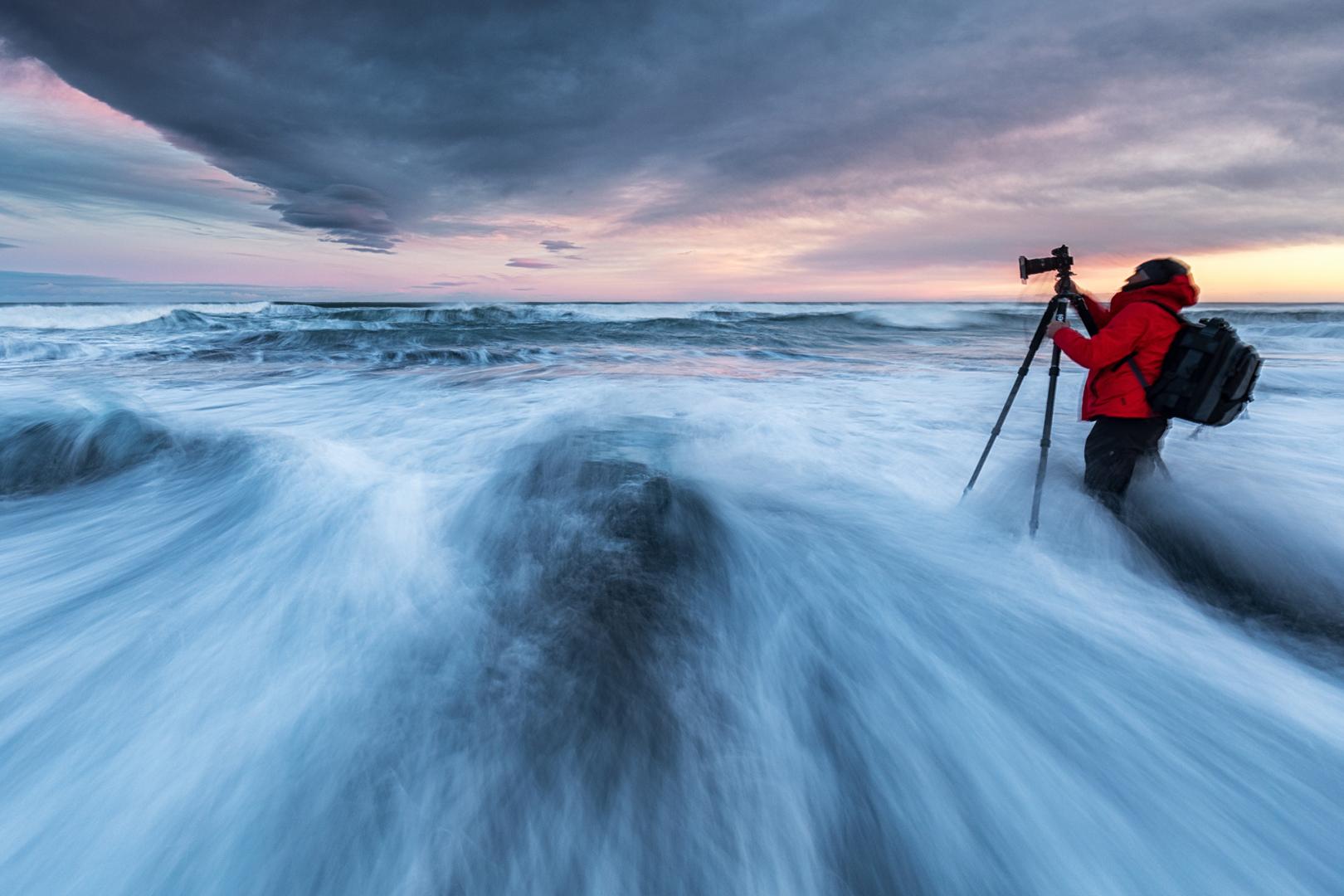 Wir gestalten unsere Unternehmungen während der Fotoreise flexibel, um stets zur besten Tageszeit an den idealen Foto Locations zu sein. In der Gletscherlagune brechen gigantische Eisbrocken vom größten Gletscher Islands ab und treiben langsam durch den See Richtung rauen Atlantik, wo sie schließlich am schwarzen Strand schmelzen. Besonders bei Sonnenaufgang bieten diese glitzernden Eisberge fantastische Fotomotive, die die magische Atmosphäre dieser einzigartigen Landschaft einfangen. Weiter östlich erwartet Sie ein weiteres Highlight unserer Fotoreise Island: das majestätische Vestrahorn bei Höfn. Diese markante Bergformation erhebt sich dramatisch aus der Ebene und bietet mit ihren scharfen Gipfeln und reflektierenden Lagunen unvergessliche Fotogelegenheiten. Ein weiterer Höhepunkt ist der Besuch einer der beeindruckendsten Eishöhlen Islands. Auf einer privaten, mehrstündigen Tour haben Sie die einmalige Gelegenheit, diese faszinierenden blauen Wunder in aller Ruhe zu erkunden und einzigartige Bilder festzuhalten. Der Besuch der Eishöhle ist witterungsabhängig.