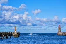Aber auch das Hinterland und die Hafenstadt Étretat selber bieten ihren fotografischen Reiz. Fotografieren können Sie hier den historischen Kern von Étretat mit ihren Villen, charmanten Lädchen, der schönen Holzhalle, wo sich der Markt befindet, und dem Hafen. Fischerboote und kleine Schiffe sind dort tagsüber angetaut und geben ein wunderschönes Fotomotiv. Entlang der Küstenstraße, ob Osten oder Westen, nicht weit von unserem Ausgangspunkt entfernt, können Leuchttürme und bretonische Kirchen fotografiert werden. Authentische und unberührte Landschaften entführen Sie auch in das Hinterland. Je nach Perspektive tritt dann das Meer im wahrsten Sinne des Wortes in den Hintergrund.