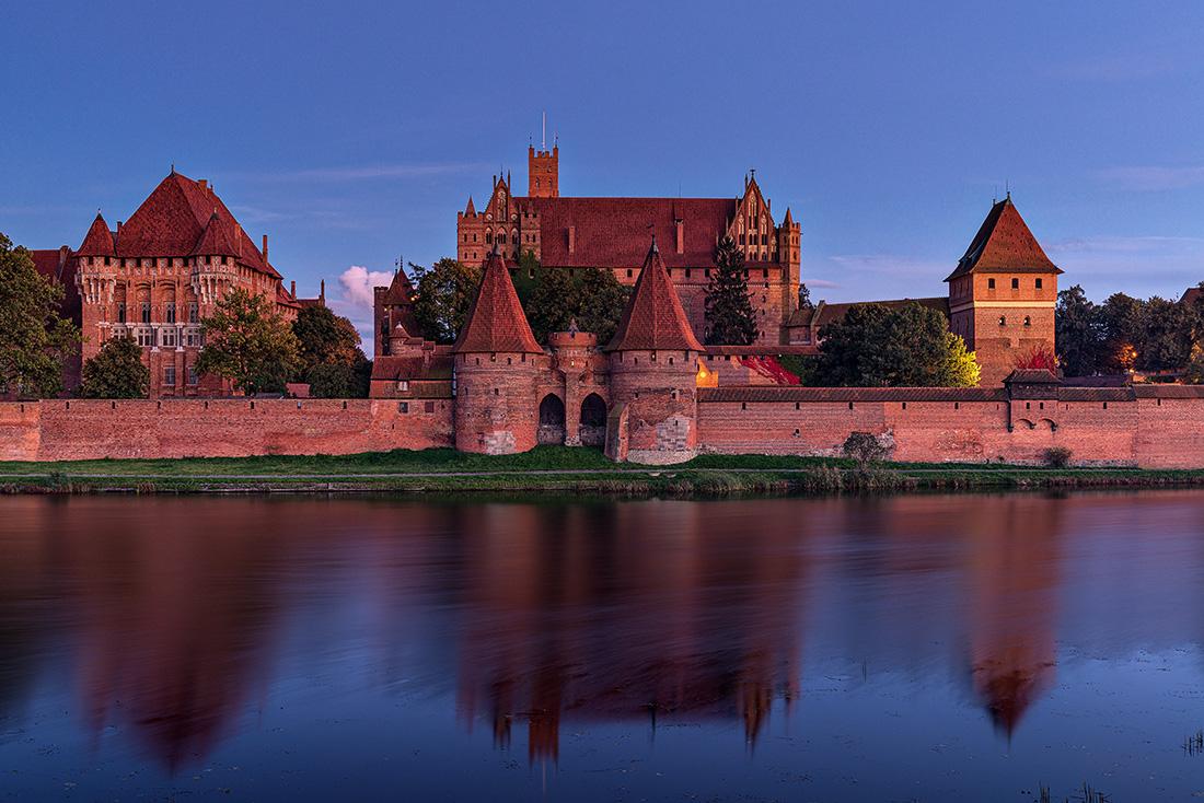 Gegen Mittag erreichen wir Malbork (Marienburg) – die größte Backsteinburg der Welt in der gleichnamigen Stadt ist der einstige Hauptsitz des Deutschen Ordens. Die vollständig restaurierte Burg beeindruckt mit ihren detailreichen Fassaden, weiten Höfen und der massiven Wehranlage – ein Eldorado für Architekturfotografen. Das Spiel von Licht- und Schatten zwischen den Türmen, die roten Backsteinmauern und die interessanten Perspektiven entlang der Wehrgänge bieten eine Vielzahl spannender Motive.
