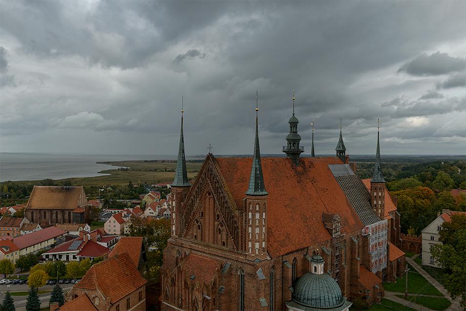 Heute besuchen wir Frombork (Frauenburg), einen malerischen, geschichtsträchtigen Ort, umgeben von der unberührten Natur des Frischen Haffs. Auf einer Anhöhe mit Blick über das Haff thront die gotische Kathedrale mit der Domburg – etwas kleiner, aber nicht weniger imposant als die Marienburg. Hier entwickelte der Domherr Nikolaus Kopernikus zu Beginn des 16. Jahrhunderts seine Theorie des Heliozentrischen Weltbilds. Mit dem Durchschreiten der mächtigen Toranlage begeben wir uns auf die Spuren des berühmten Gelehrten und halten seinen Wirkungsort in einer fotografischen Zeitreise fest. Die massiven Backsteinmauern, die filigranen Fensterbögen und Türme stehen uns dafür geduldig Modell. Die sorgfältig restaurierte Anlage ist von einem weitläufigen Park umgeben, der sich hervorragend für harmonische Bildkompositionen von Natur und Architektur eignet.