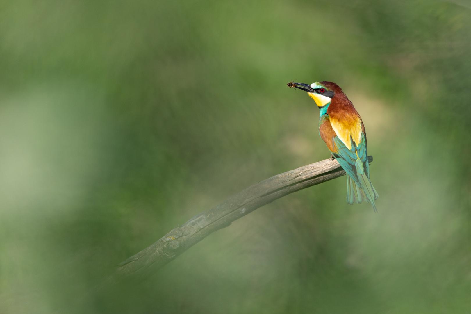 Ein intensiver Fototag: Morgens und nachmittags besuchen wir erneut verschiedene Hides, um uns gezielt auf unterschiedliche Vogelarten zu fokussieren. Die Bienenfresser zeigen oft spektakuläre Flugmanöver, während der Wiedehopf mit seinem auffälligen Federkamm punktet.