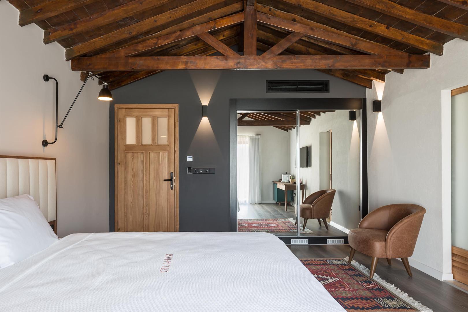 Es stehen 31 modern eingerichtete Suiten verschiedener Kategorien zur Verfügung, von einstöckigen Beaujolais Business Suiten bis hin zur Luxus Sparkling Suite. Sie liegen verteilt in einem gepflegten Garten und verfügen entweder über ein Doppel- oder zwei Einzelbetten und Badezimmer, sowie Blick auf Weinberge und Pinienwälder. Die Ausstattung aller Suiten lässt selbst bei den anspruchsvollsten Gästen keine Wünsche offen.