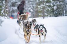 Lappland Urlaub im Winter - Übernachtung in einer HütteHeute steigen Sie vom motorisierten Vehikel auf die Kraft der Tiere – die Huskys um. Touren mit dem Hundeschlitten sind wohl mit die intensivsten Erlebnisse in Finnisch-Lappland. Huskys werden für die nächsten zwei Tage Ihre treuen Begleiter sein. Sie haben Ihre Ausrüstung für eine spannende Reise bei frostigen Temperaturen weit unter Null Grad mit Übernachtung in Europas allerletzter Wildnis gepackt, dann kann ja Ihr erfahrener Hundeführer (Musher) mit der Einweisung zum Führen eines Hundeschlitten Gespanns mit 4-5 Hunden beginnen. Er baut zunächst ein Vertrauen zwischen Ihnen und ihren treuen Husky auf, um dann auf die ca. 25 km lange Tagesetappe zu starten. Das Mittagessen wird am gemütlichen Lagerfeuer in der stillen Wildnis eingenommen, bevor Sie weiter ziehen zur Ihrem Nachtquartier – einer Wildnishütte. Waren Sie Pfadfinder? Jetzt können Sie Ihre Wildnis Fähigkeiten testen, Feuer machen, Schlittenhunde füttern und die Seesauna einheizen für einen belebenden Saunagang. Auch die Nächte am Rande der Arktis sind wunderschön und intensiv. Nach dem Abendessen lockt Sie vielleicht das Naturphänomen und die Magie des Nordlichtes vor die Hütte. Ob Sie das Naturschauspiel am nächtlichen Sternenhimmel in violetten, roten oder graugrünen tanzenden Lichtbändern beobachten, hängt von den Wellenlängen der Sonnenstürme ab. Und natürlich hoffen wir auf ein klares arktisches Firmament.