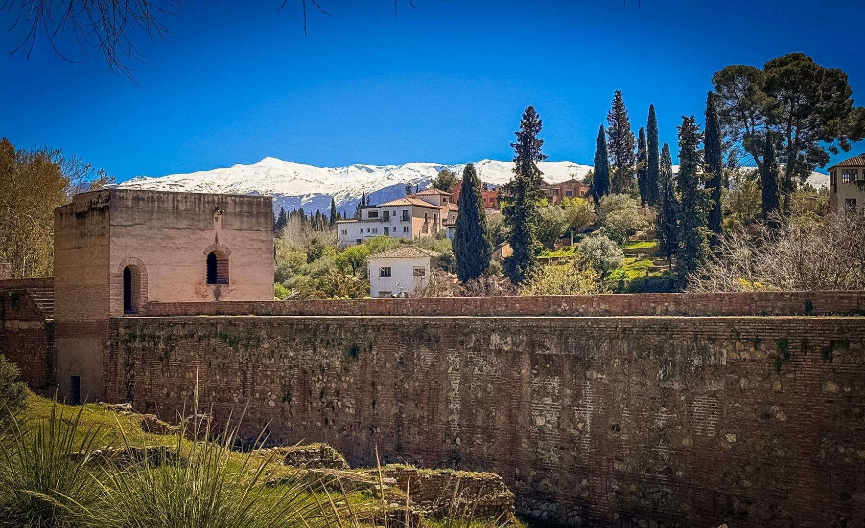 Der älteste Teil der Anlage ist die Alcazaba, eine wehrhafte Festung mit markanten Türmen. Von hier aus eröffnen sich weite Ausblicke über Granada, das Albaicín und die umliegende Landschaft – ein eindrucksvoller Moment, der die besondere Atmosphäre dieses historischen Ortes unterstreicht.
