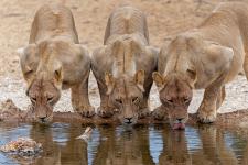 Die offenen Landschaften des Kgalagadi ermöglichen außergewöhnlich gute Sichtbedingungen. Tiere lassen sich hier oft über längere Zeit beobachten und wirken weniger scheu als in dichter bewachsenen Nationalparks – ideale Voraussetzungen für eindrucksvolle Begegnungen und Fotomotive. Ein besonderer Fokus liegt auf den Trockenflussbetten von Auob und Nossob, den ökologischen Lebensadern des Parks. Entlang dieser Täler konzentriert sich das Wild: Mit etwas Glück entdecken Sie Geparden, Schakale, Hyänen und die imposanten Kalahari-Löwen mit ihrer charakteristischen dunklen Mähne.
