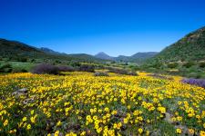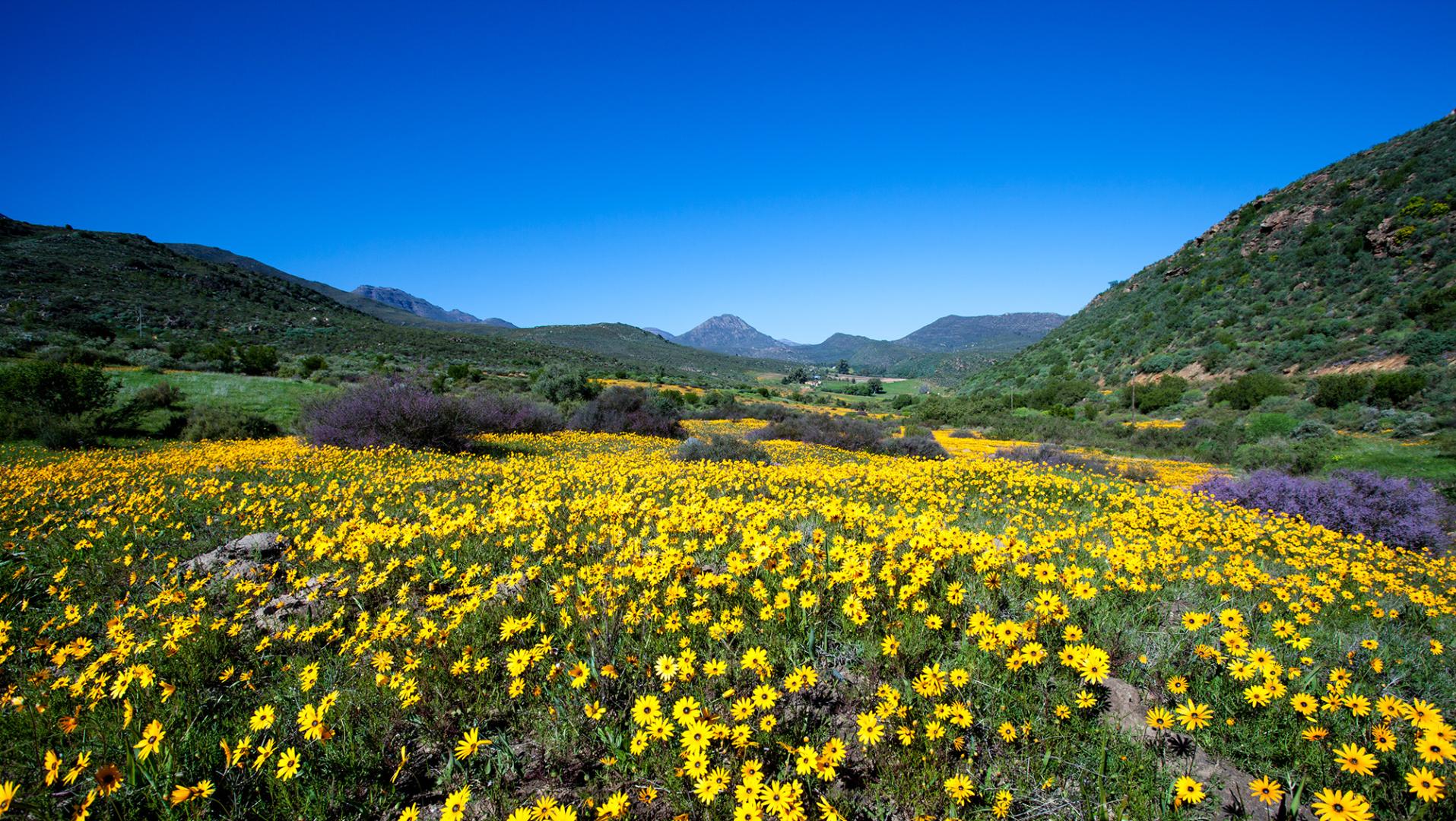 Heute führt Ihre individuelle Reise von der Küste weg, ins Landesinnere – durch offene Landschaften, kleine Dörfer und weite Felder. Zur Blütezeit im südafrikanischen Frühling (Juli bis September) eröffnen sich unterwegs farbenprächtige Teppiche aus Wildblumen. Je näher Sie dem Örtchen Clanwilliam kommen, desto felsiger wird die Umgebung. In der Ferne erscheinen dunkle Gebirgsketten.